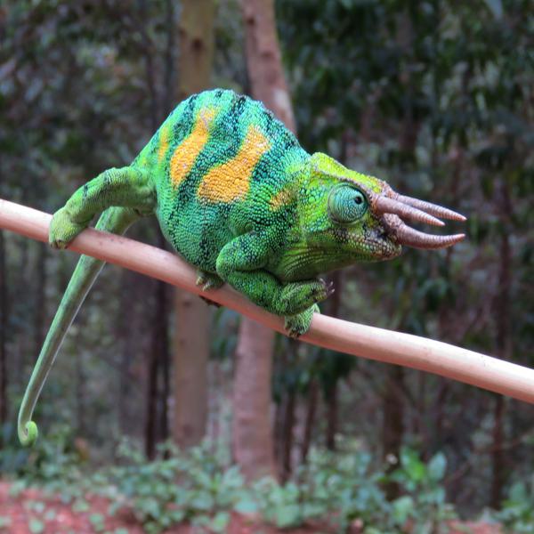 We will hopefully also encounter some of the primates and other mammals that occur here.We will arrive in the afternoon and depending on our ETA we may do some birding in the secondary forest and in and around the gardens. We will also keep an eye out for the localised Johnson's three-horned Chameleon.